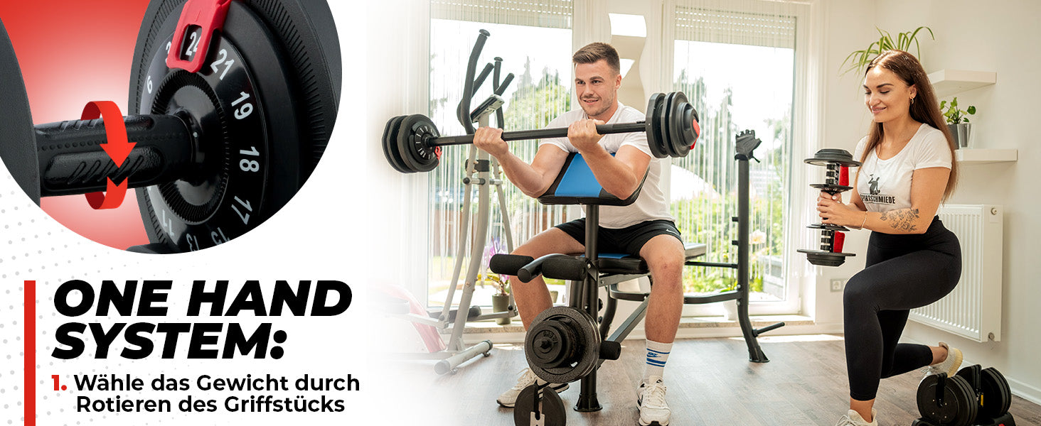 Vielseitig: Ob du gezielte Muskelgruppen trainieren oder ein Ganzkörper-Workout durchführen möchtest – die ergonomischen Drehgriffe ermöglichen blitzschnelle Gewichtsanpassungen, die dir volle Freiheit bei der Auswahl deiner Übungen lassen. Von isolierten Bizepscurls bis hin zu intensiven Schulterdrücken – mit diesen Kurzhanteln ist alles möglich. Eine ideale Ergänzung dazu ist unsere verstellbare Hantelbank.